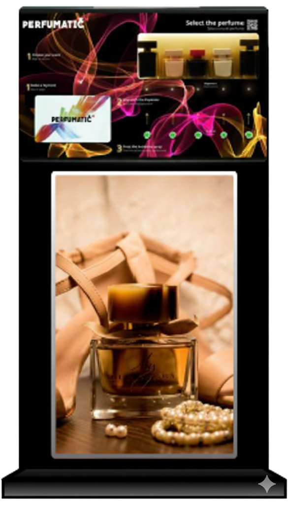 Perfumatic propose des distributeurs automatiques de parfums de luxe qui améliorent l'expérience client tout en générant des revenus passifs pour votre établissement.